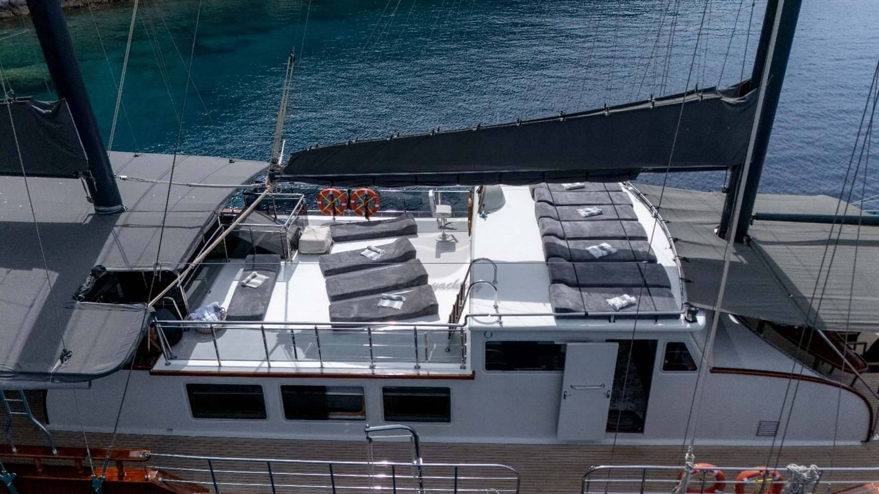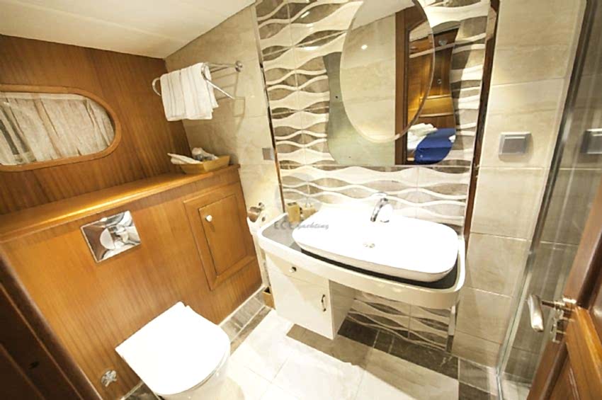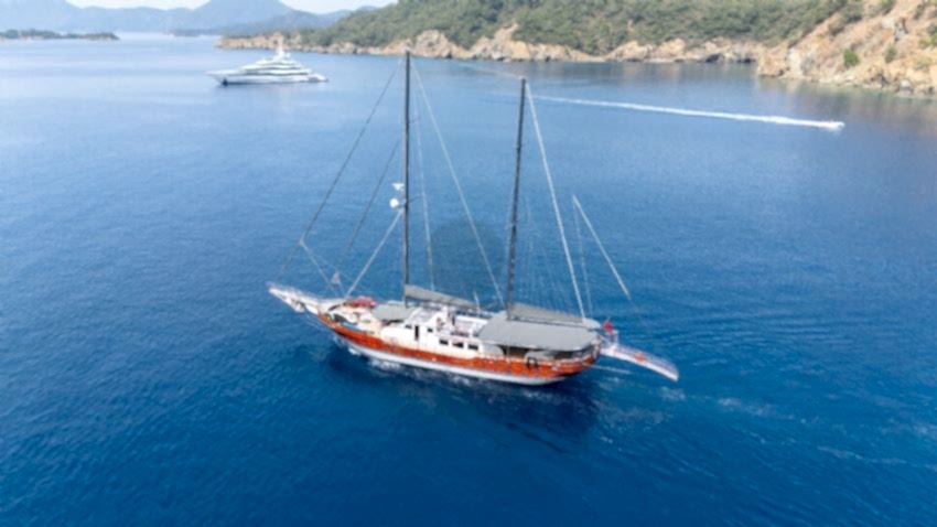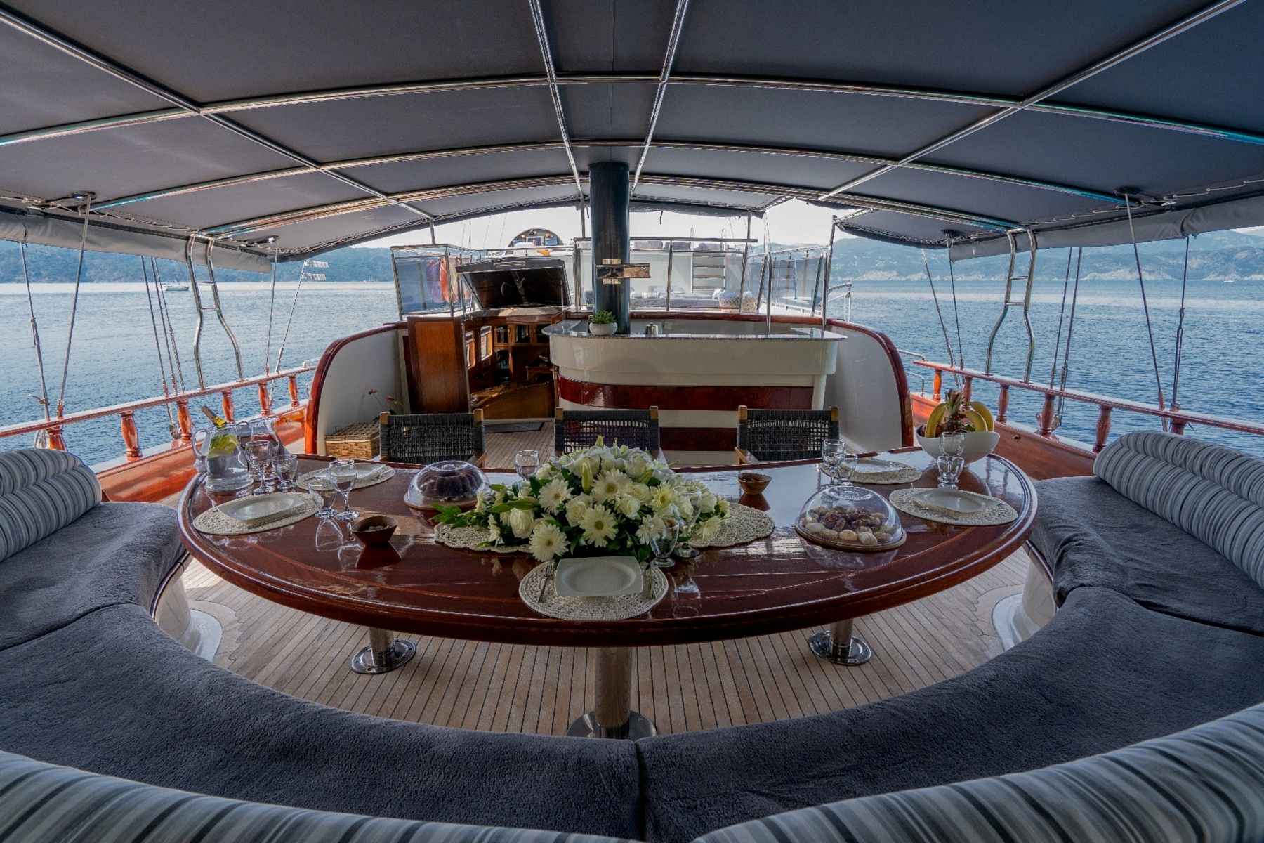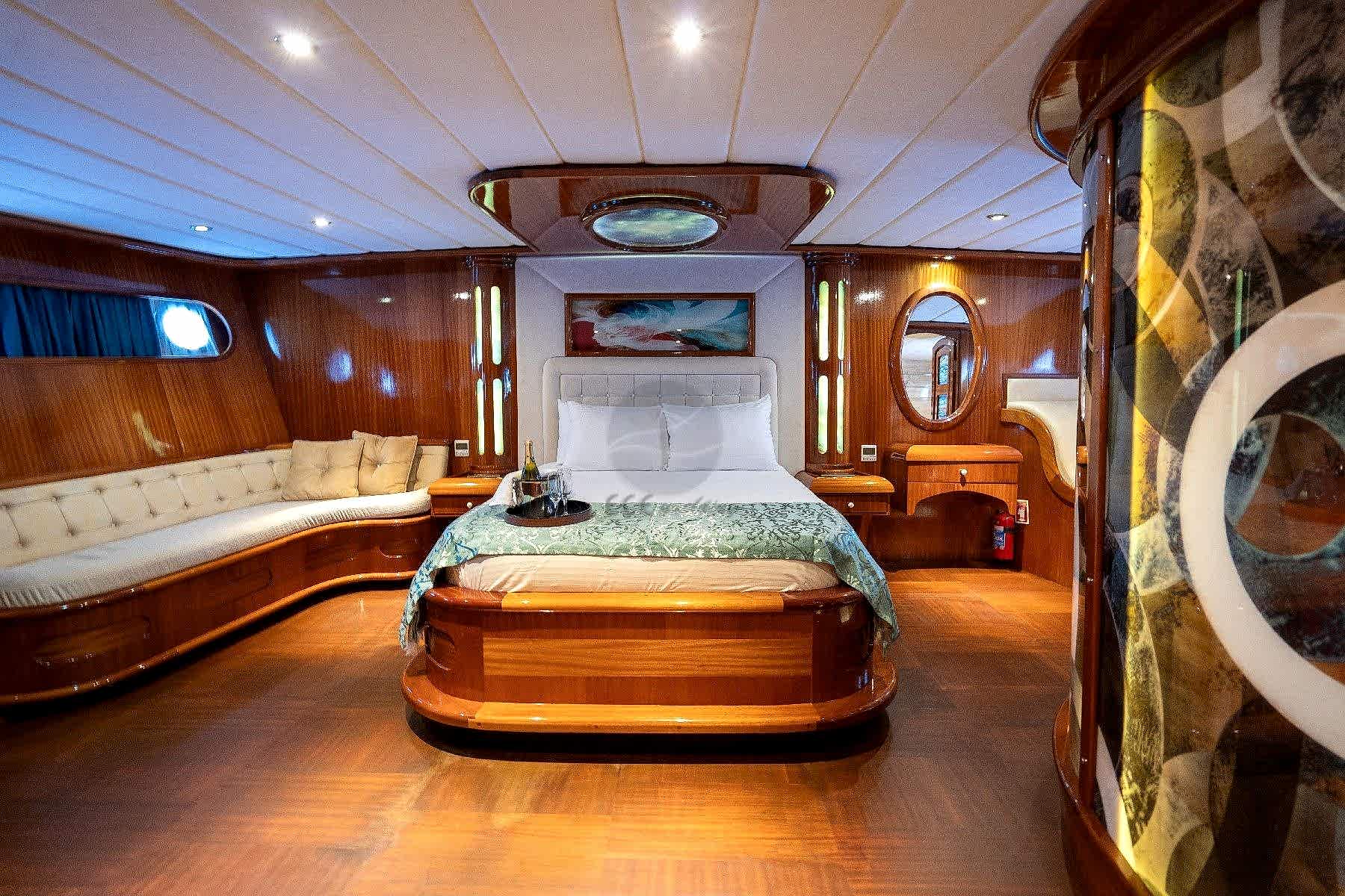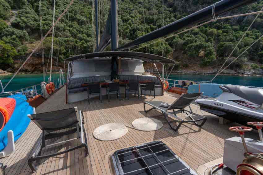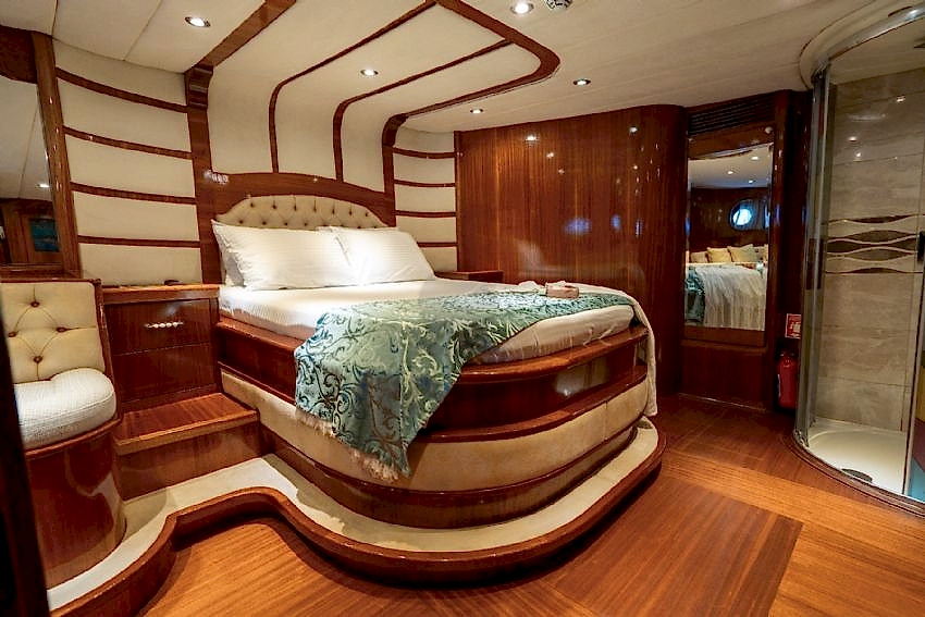 Mavi Yolculukta her türlü ihtiyaç göz önünde tutularak dizayn edilmiştir. Üstte güneşlenme alanı, ön ve arkada yemek masası ayrıca salonda da yemek masası bulunmaktadır. 33 metre boyundaki Gulet teknemiz delüks sınıfta hizmet vermektedir. Her türlü konfora sahip teknemizde konusunda uzman, 1 kaptan, 1 gemici, 1 aşçı, 1 oda görevlisi ve 1 adet hostes bulunmaktadır.