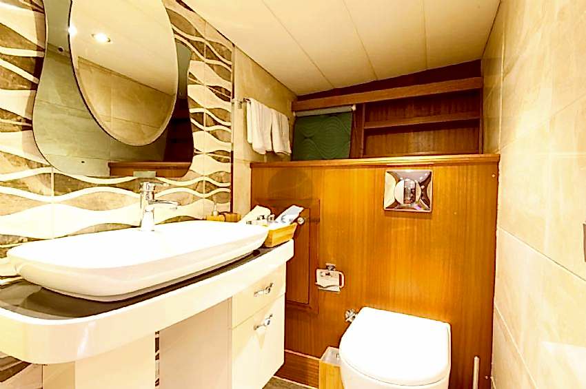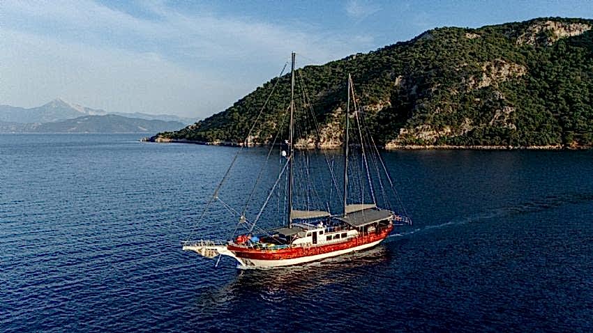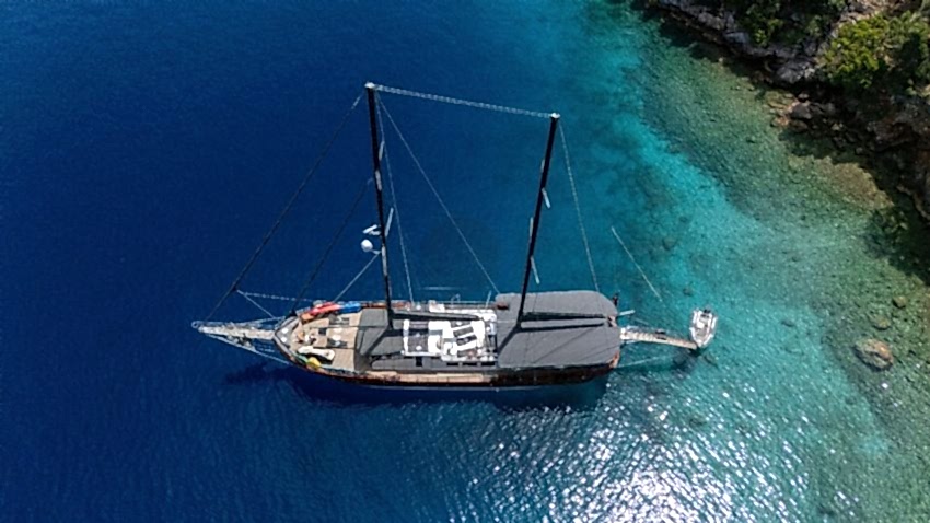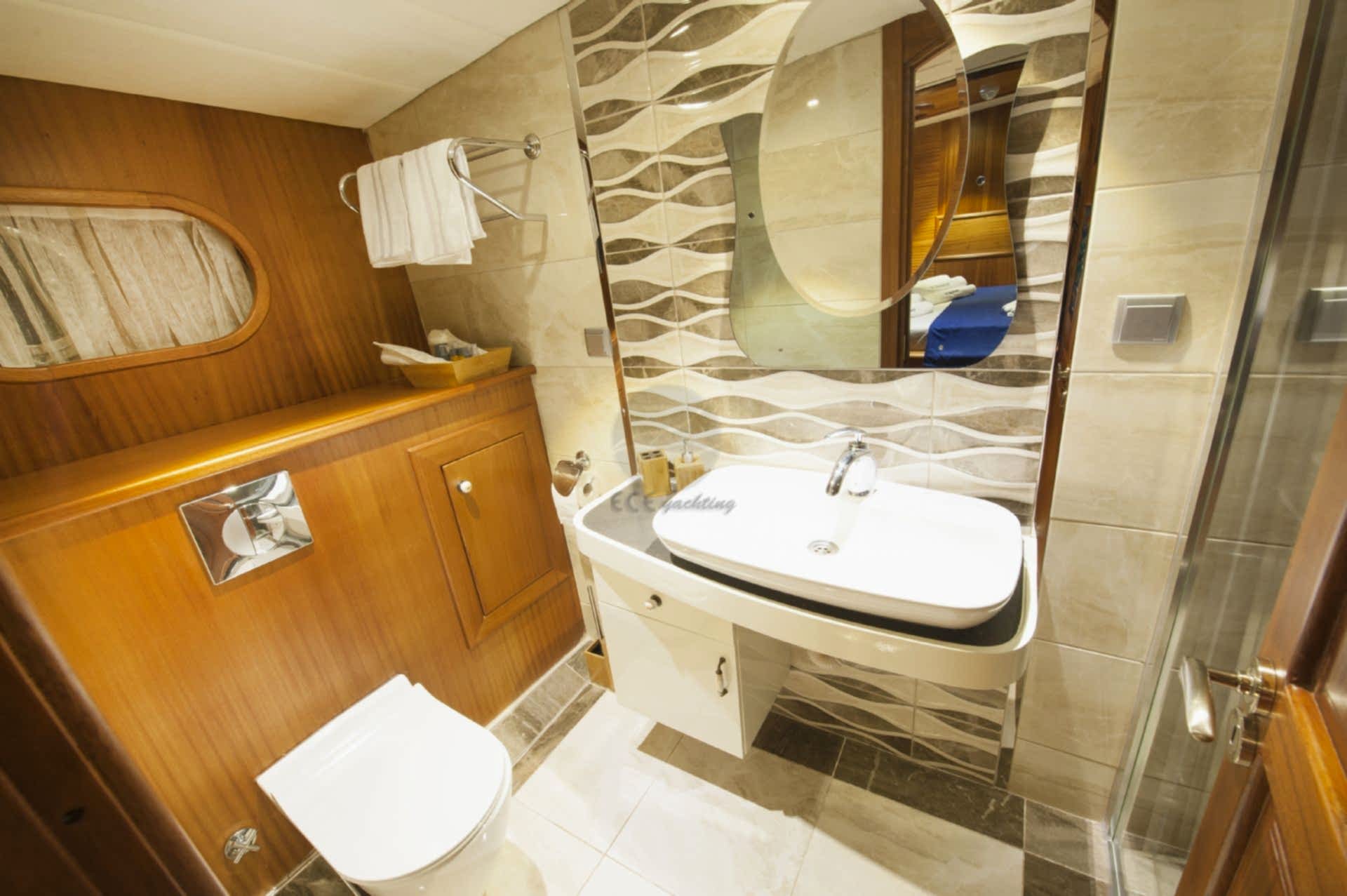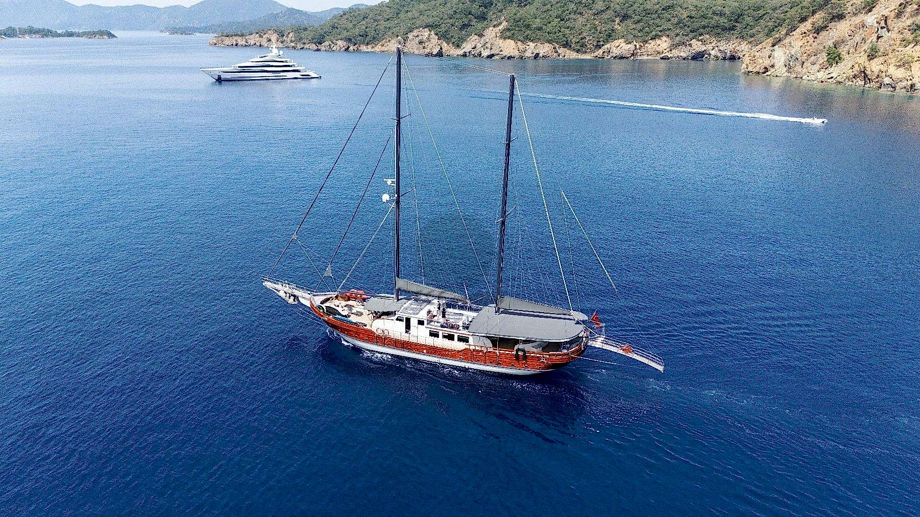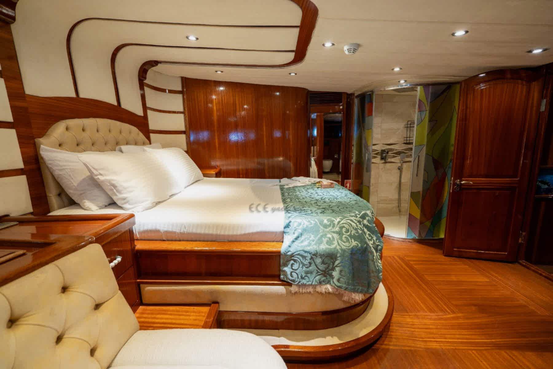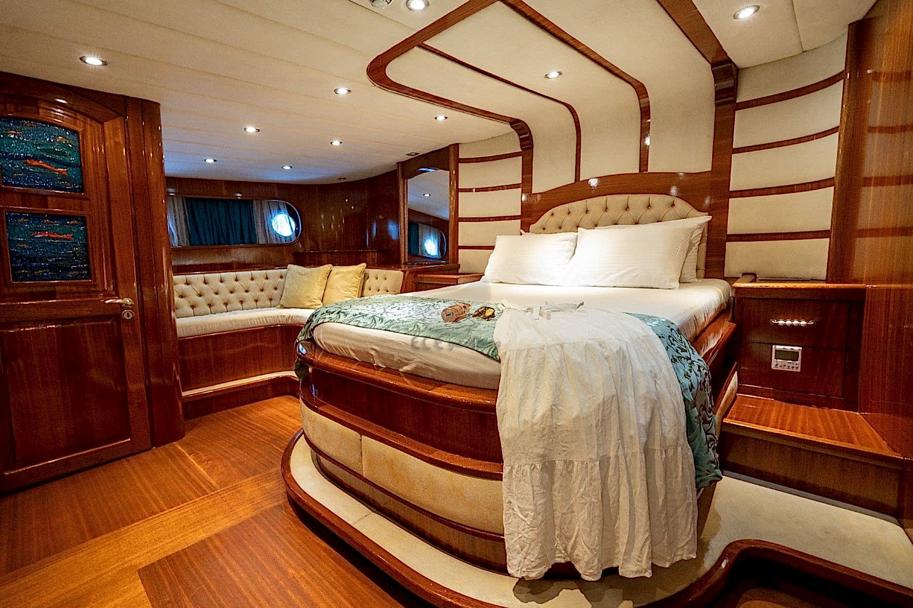 Mavi Yolculukta her türlü ihtiyaç göz önünde tutularak dizayn edilmiştir. Üstte güneşlenme alanı, ön ve arkada yemek masası ayrıca salonda da yemek masası bulunmaktadır. 33 metre boyundaki Gulet teknemiz delüks sınıfta hizmet vermektedir. Her türlü konfora sahip teknemizde konusunda uzman, 1 kaptan, 1 gemici, 1 aşçı, 1 oda görevlisi ve 1 adet hostes bulunmaktadır.