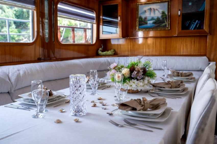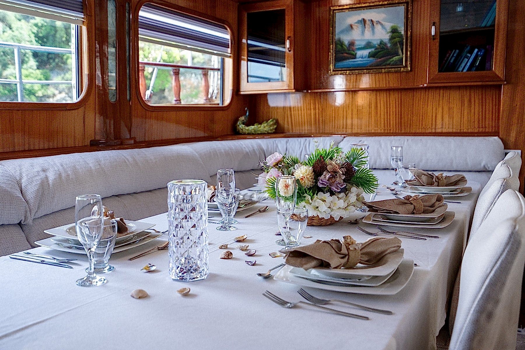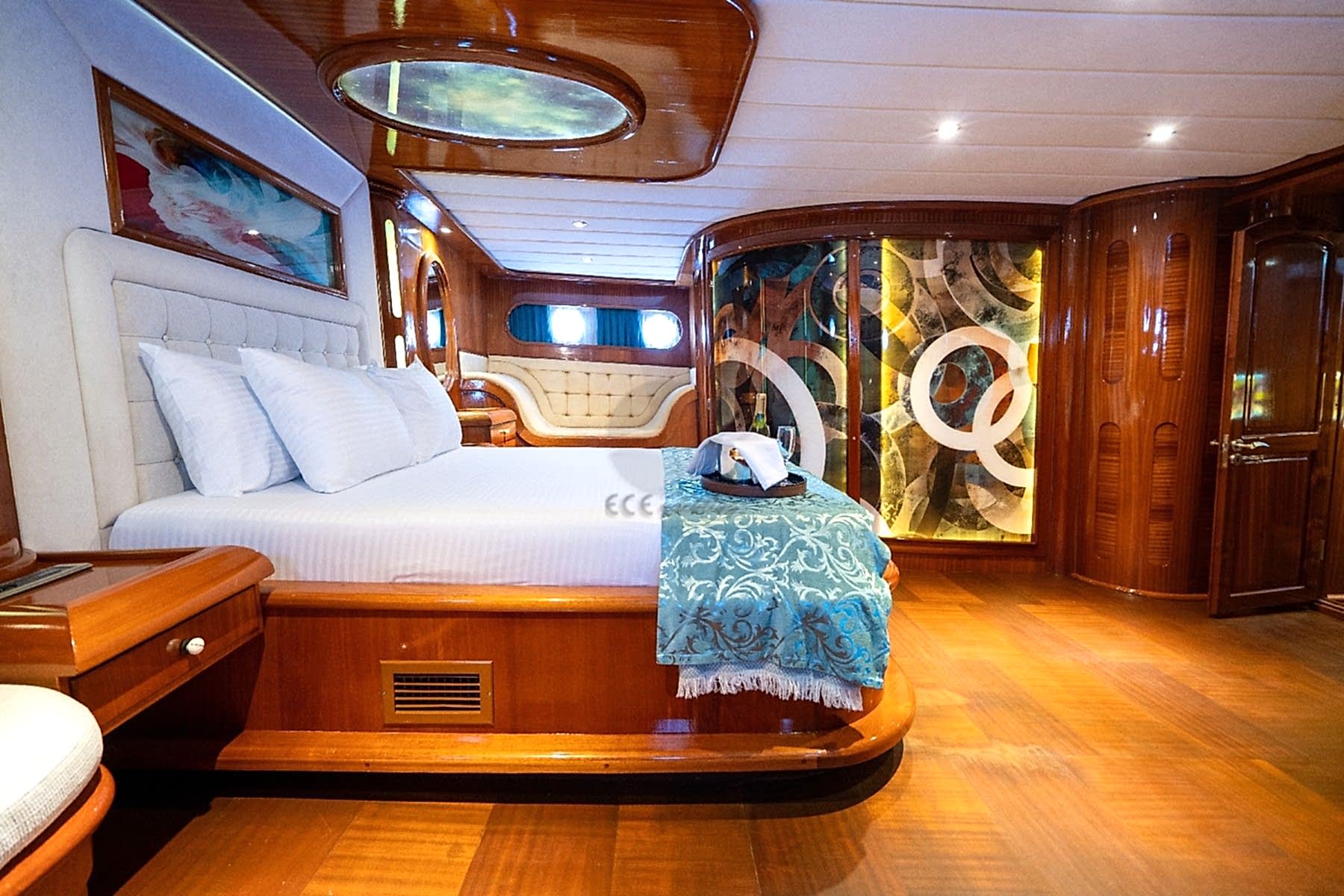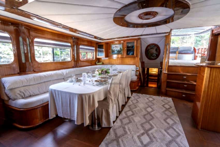 2017 yılında iç yaşamı sıfırdan tekrar dizayn edilen teknede ahşap işçiliğin yanı sıra vitray ve led ışıklar kullanılmıştır. Berrak Su Yatı.