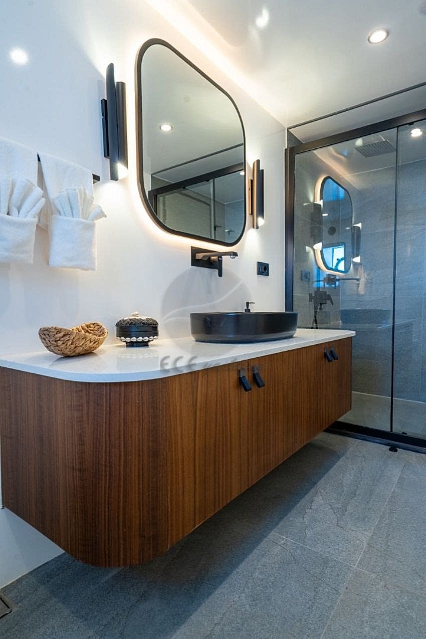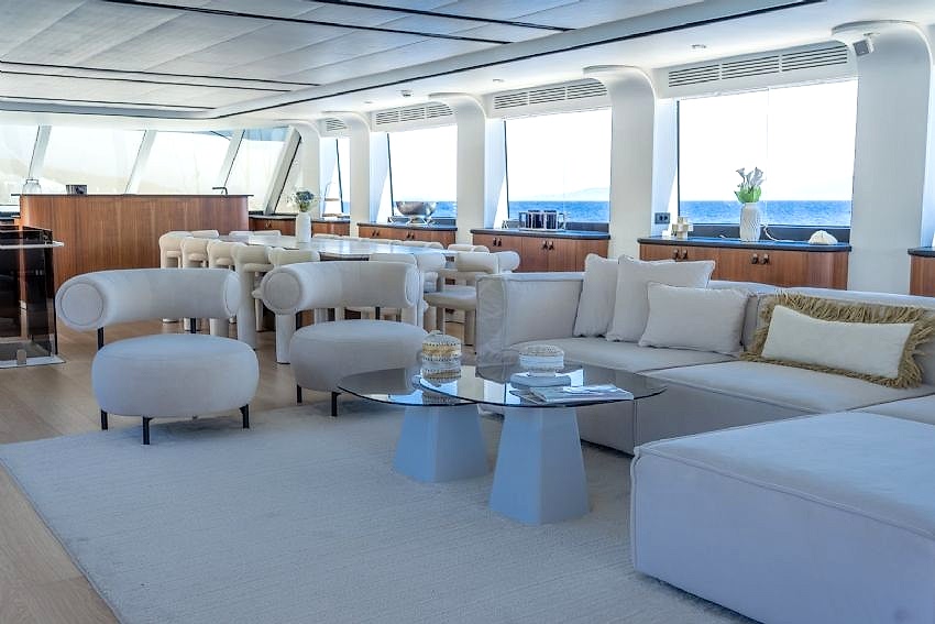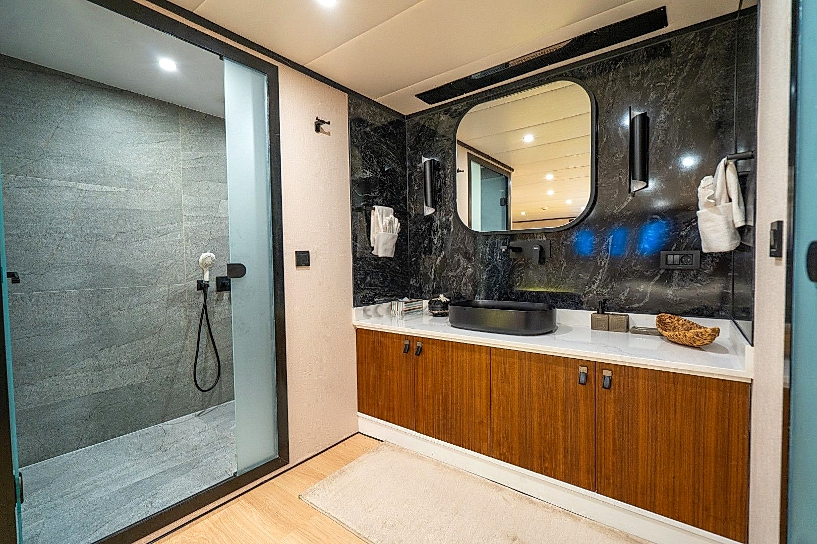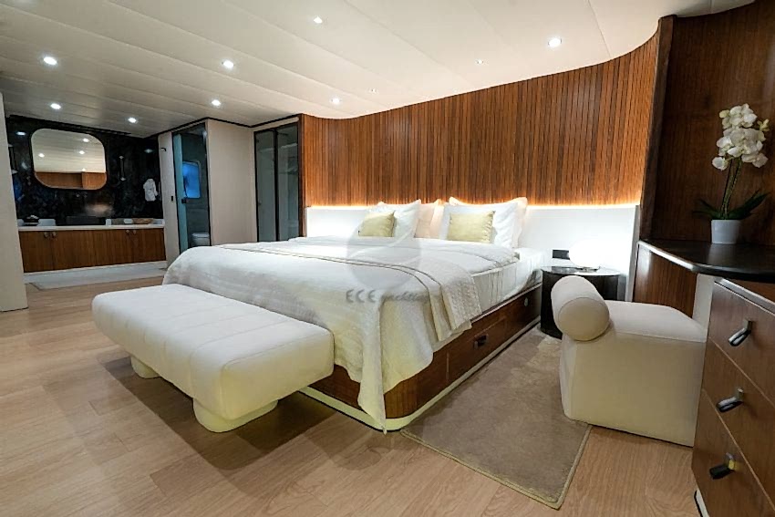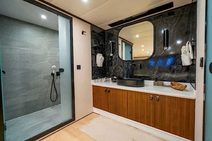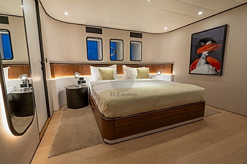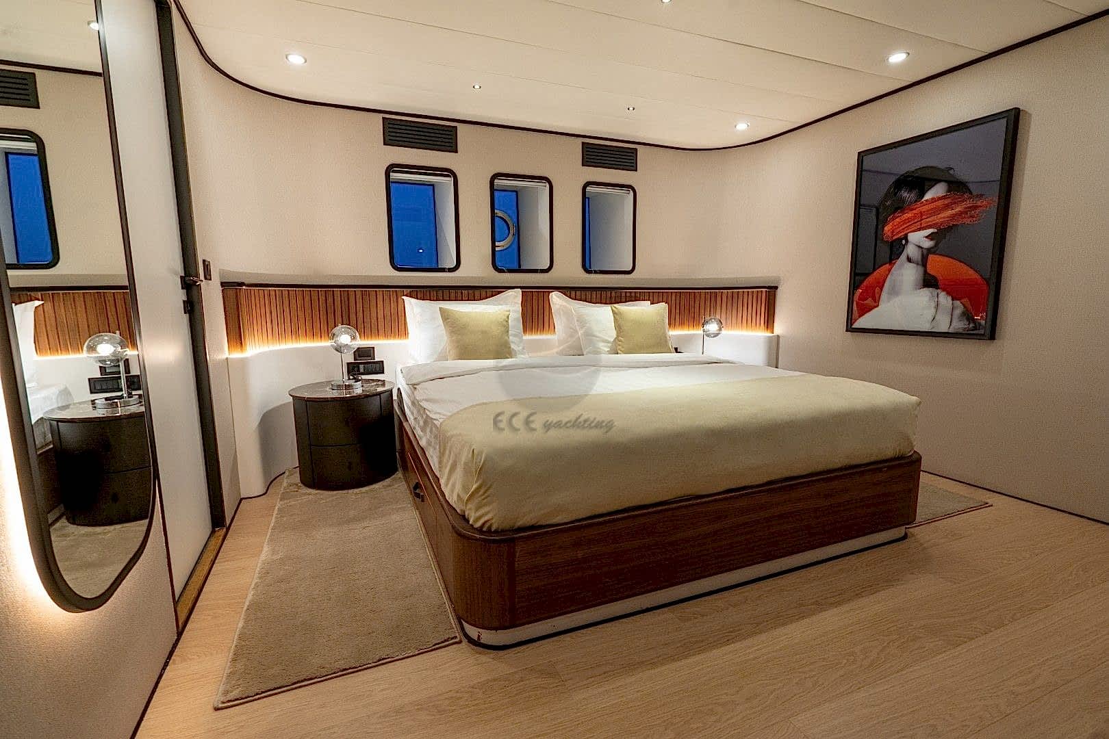 50 metre uzunluğunda, zarif tasarımı ve üstün özellikleriyle seçkin konuklarına unutulmaz bir deneyim sunar. 7 Geniş kabininde (1 Master, 6 Vip) toplam 14 misafiri ağırlayabilen bu gulet, modern tasarımı ve konforlu yaşam alanlarıyla fark yaratır. Klimalı kabinler ve zarif bir oturma alanı, rahatlıkla dolu bir tatil vadediyor.