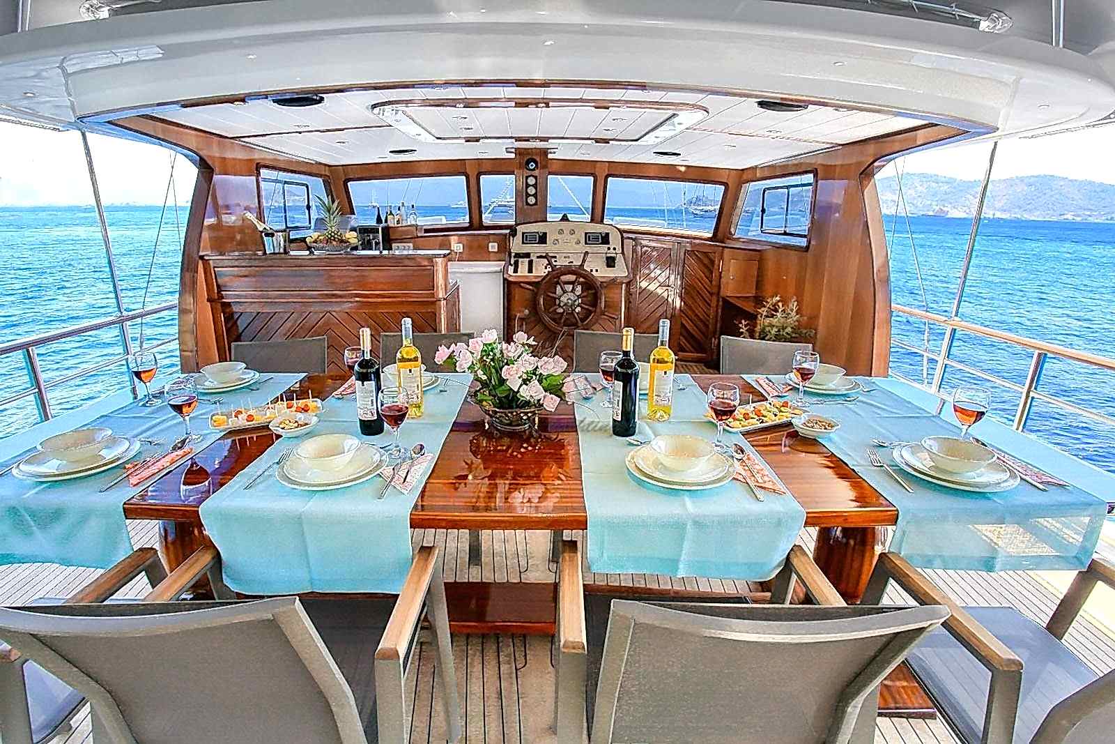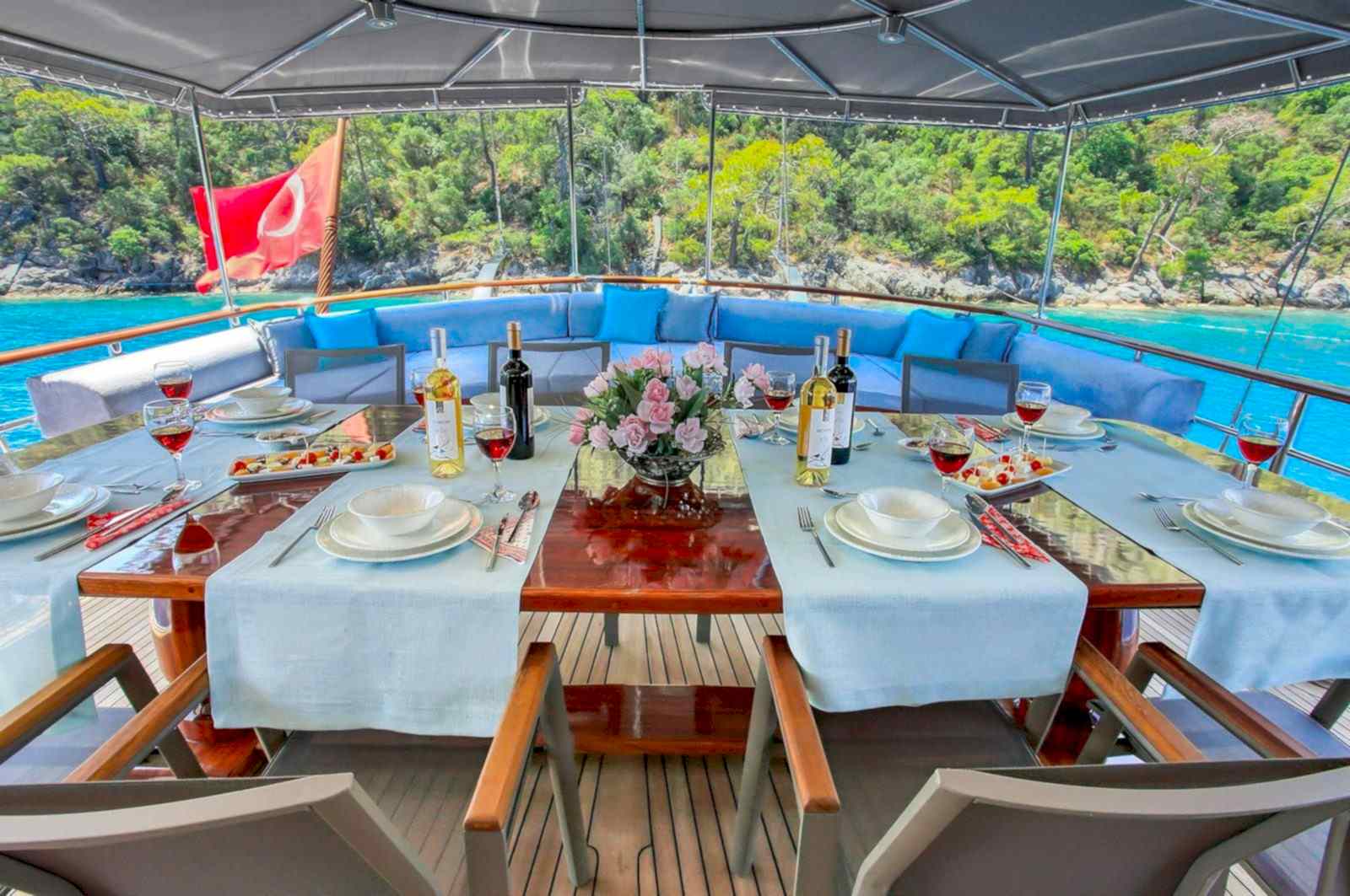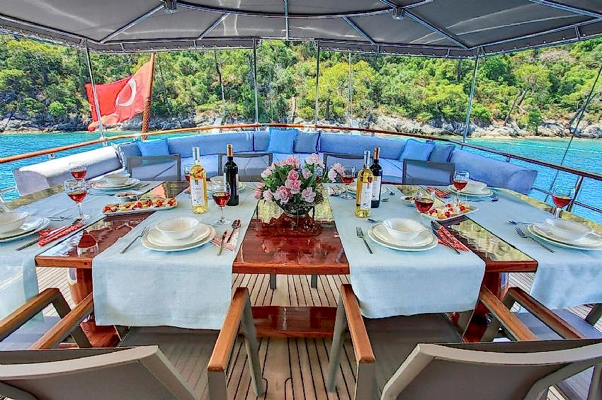 Şnorkel ekipmanları, Balık tutma malzemeleri, Güneş tenteleri, Güneş yatakları, Güvertede duş, Deniz merdiveni