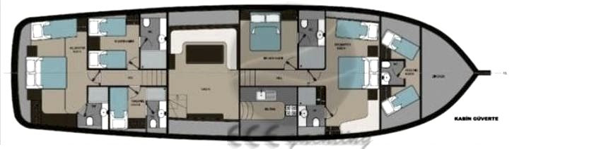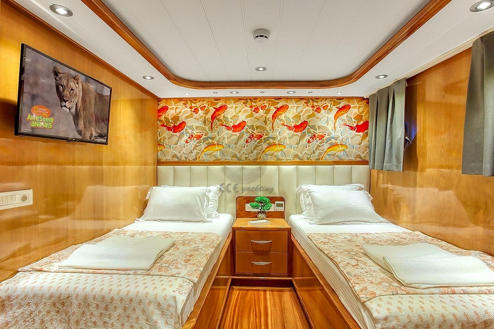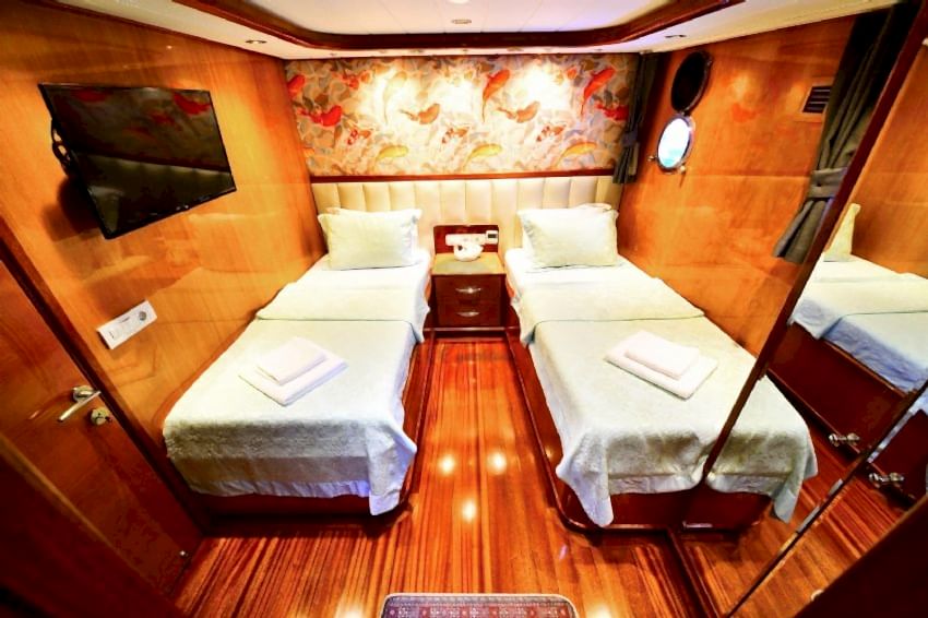 Buz makinesi, CD Oynatıcı, DVD Oynatıcı, Kahve makinesi, Şarap soğutucu, Kabinlerde servis telefonu, Türk karasularında internet bağlantısı, Saç kurutma makinesi, Kasa